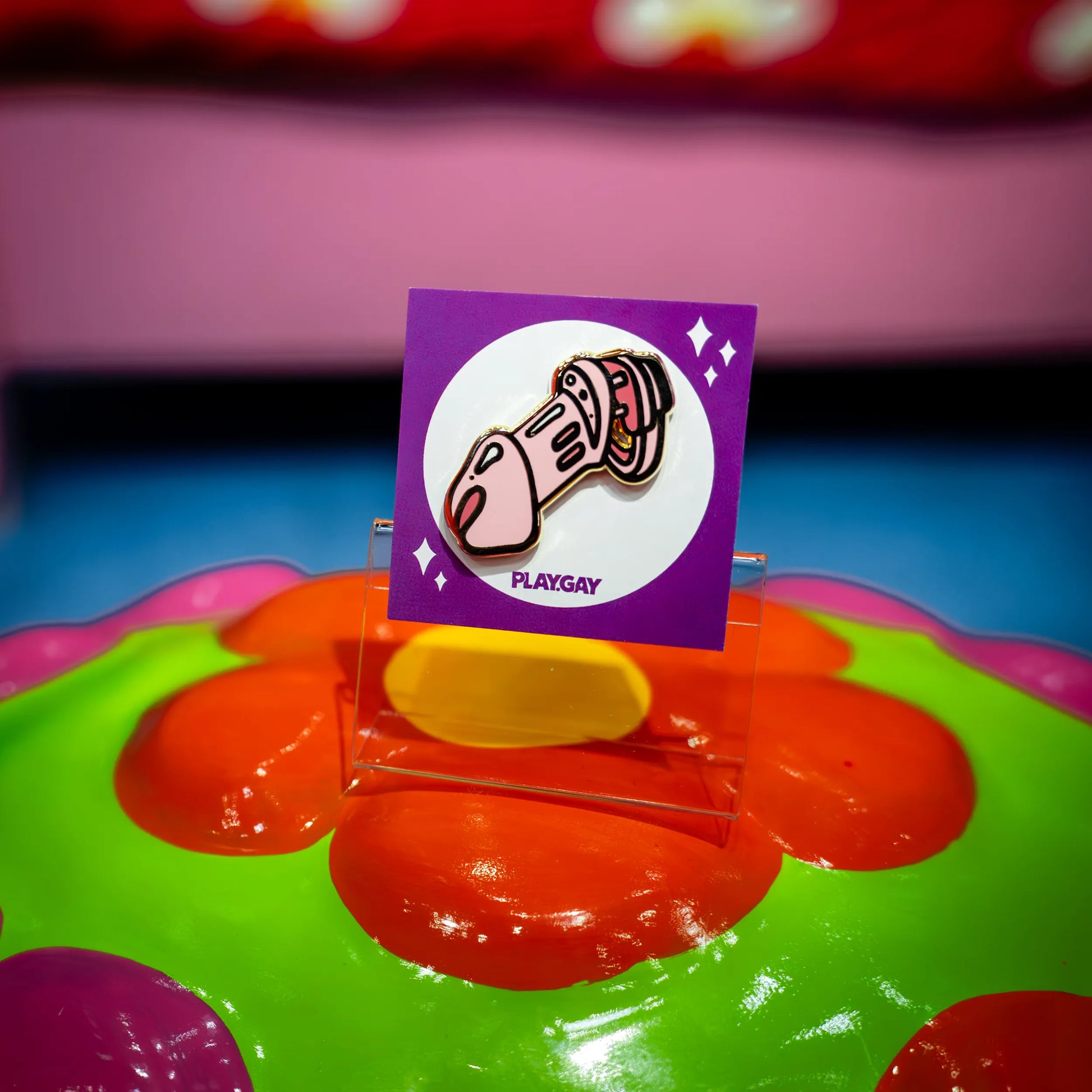 Than this chastity cage enamel pin is your shiny little secret (or not-so-secret) signal to the world: Being locked is your love language.