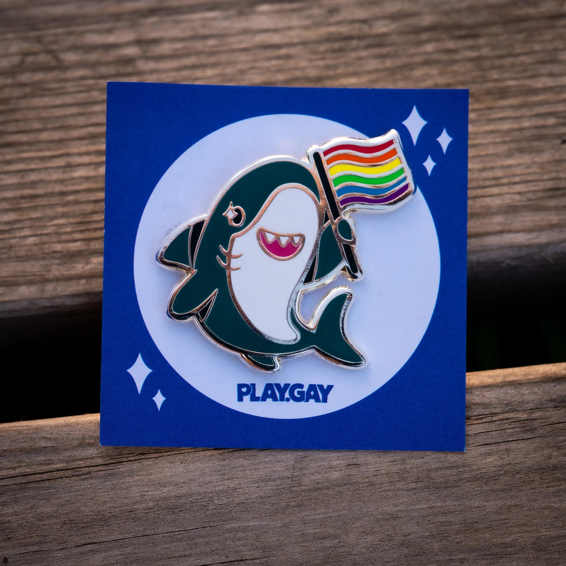 This cute enamel shark with the pride flag is more than just adorable – it’s a symbol of safety.